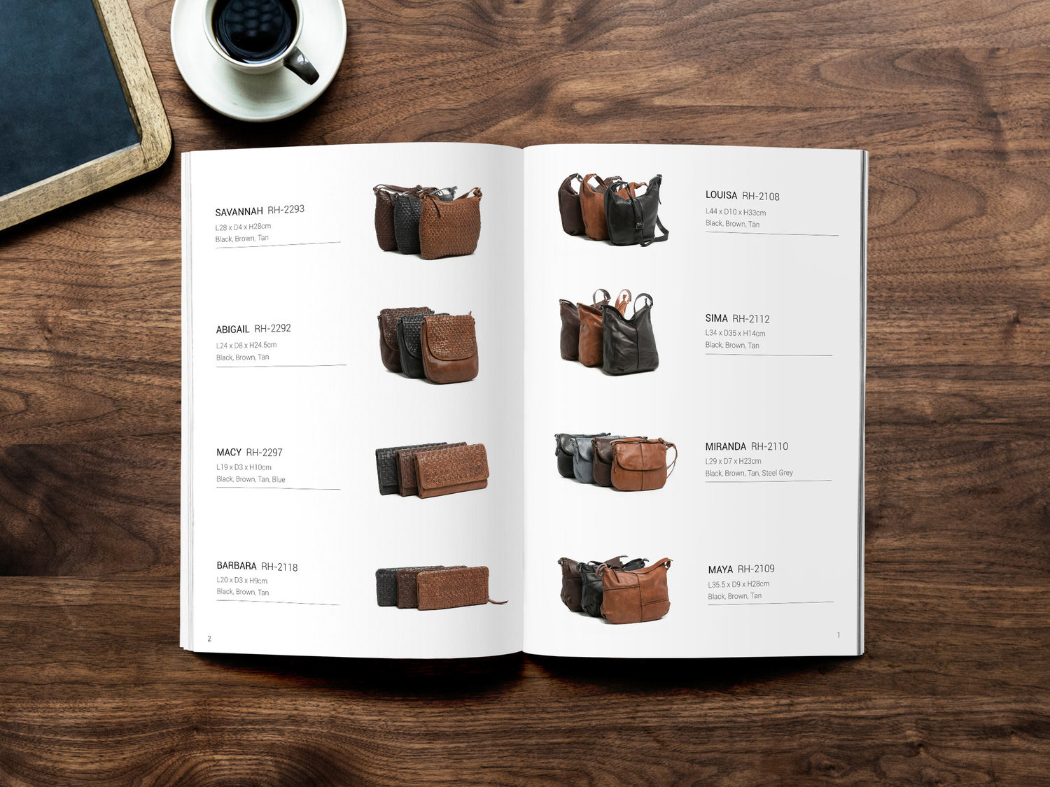 that does a wholesale of leather goods. The brief was to design the cover, back and all internal pages of the catalogue and make sure that each product stands out and information is clear.
